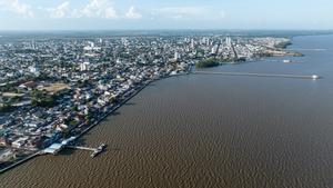 (251110) -- AMAPA, 10 noviembre, 2025 (Xinhua) -- Vista aérea tomada con un dron el 9 de noviembre de 2025 del punto donde la ciudad de Macapá se encuentra con el río Amazonas en el estado de Amapá, Brasil. Hoy, mientras la atención mundial se centra en la conservación del Amazonas, Macapá se erige como un claro ejemplo de armonía entre la vida humana y la naturaleza. (Xinhua/Wang Tiancong) (rtg) (ah) (ce)