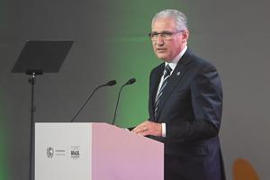 (251110) -- BELEM, 10 noviembre, 2025 (Xinhua) -- El presidente de la 29ª Conferencia de las Partes (COP29) de la Convención Marco de las Naciones Unidas sobre el Cambio Climático, Mukhtar Babayev, pronuncia un discurso durante la inauguración de la 30ª Conferencia de las Partes (COP30) de la Convención Marco de las Naciones Unidas sobre el Cambio Climático, en estado de Pará, Brasil, el 10 de noviembre de 2025. La COP30 de la Convención Marco de las Naciones Unidas sobre el Cambio Climático comenzó la mañana del lunes en la ciudad de Belém, en el estado amazónico de Pará de Brasil, con el objetivo de volver a colocar la lucha contra el cambio climático en el centro de las prioridades internacionales. (Xinhua/Lucio Tavora) (lt) (rtg) (ah) (ce)