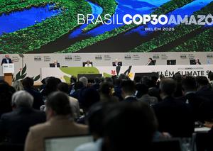 (251106) -- BELEM, 6 noviembre, 2025 (Xinhua) -- El presidente brasileño, Luiz Inácio Lula da Silva (i-atrás), habla en la inauguración de la Cumbre de Líderes que antecede a la 30ª Conferencia de las Partes (COP30) de las Naciones Unidas sobre el Cambio Climático, en Belém, estado de Pará, Brasil, el 6 de noviembre de 2025. El presidente de Brasil, Luiz Inácio Lula da Silva, convocó el jueves a acelerar la transición energética hacia fuentes renovables y a proteger la naturaleza para contener el calentamiento global, al inaugurar la Cumbre de Líderes que antecede a la COP30 de las Naciones Unidas sobre el Cambio Climático, que se realizará del 10 al 21 de noviembre en la ciudad de Belém del estado amazónico de Pará (norte). (Xinhua/Lucio Tavora) (lt) (jg) (ah) (da)