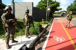(251103) -- BELEM, 3 noviembre, 2025 (Xinhua) -- Infantes de Marina patrullan una calle durante una operación de Garantía de Ley y del Orden previo al inicio de la 30ª Conferencia de las Partes (COP30) de la Convención Marco de las Naciones Unidas sobre el Cambio Climático, en Belém, estado de Pará, Brasil, el 3 de noviembre de 2025. El presidente de Brasil, Luiz Inácio Lula da Silva, firmó un decreto, publicado el lunes en el Diario Oficial de la Unión, que autoriza la movilización de las Fuerzas Armadas en operaciones de Garantía de la Ley y del Orden en la ciudad de Belém do Pará hasta el 23 de noviembre próximo. (Xinhua/Lucio Tavora) (lt) (rtg) (ah) (ce)