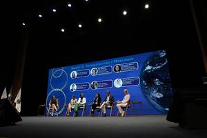 (250328) — BELO HORIZONTE, 28 marzo, 2025 (Xinhua) — Imagen del 27 de marzo de 2025 de panelistas participando en un panel de discusión en el WEForum, en Belo Horizonte, Brasil. El emprendimiento femenino es importante en los países BRICS, aunque todavía hay falta de oportunidades, según afirmaron los más de 1.150 participantes en el WEForum, un importante encuentro de negocios promovido por la Alianza Empresarial de Mujeres de los BRICS (BRICS WBA, por sus siglas en inglés), que se concluyó el jueves en Belo Horizonte, Brasil. (Xinhua/Paulo Lopes) (jg) (da) (vf)