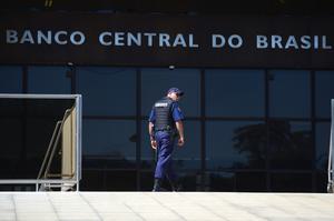(250612) — BRASILIA, 12 junio, 2025 (Xinhua) — Un elemento de seguridad vigila frente a la sede del Banco Central de Brasil, en Brasilia, Brasil, el 12 de junio de 2025. (Xinhua/Lucio Tavora) (lt) (rtg) (ra) (vf)
