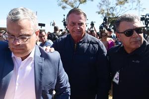 (250718) -- BRASILIA, 18 julio, 2025 (Xinhua) -- El expresidente brasileño, Jair Bolsonaro (c), acusado por la justicia brasileña de participar en un presunto intento de golpe de Estado en 2022, sale de la sede de la Policía Penal donde le fue instalada una tobillera electrónica para ser monitoreado, en Brasilia, Brasil, el 18 de julio de 2025. Bolsonaro deberá utilizar una tobillera electrónica para ser monitoreado y no podrá acceder a redes sociales por orden del Supremo Tribunal Federal, instancia que también ordenó el viernes una operación de registro e incautación en su residencia en la ciudad de Brasilia y en la sede del Partido Liberal. (Xinhua/Lucio Tavora) (lt) (jg) (da) (vf)