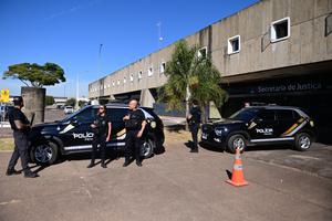 (250718) -- BRASILIA, 18 julio, 2025 (Xinhua) -- Oficiales de policía vigilan mientras el expresidente brasileño, Jair Bolsonaro, acusado por la justicia brasileña de participar en un presunto intento de golpe de Estado en 2022, se encuentra en la sede de la Policía Penal donde le será instalada una tobillera electrónica para ser monitoreado, en Brasilia, Brasil, el 18 de julio de 2025. Bolsonaro deberá utilizar una tobillera electrónica para ser monitoreado y no podrá acceder a redes sociales por orden del Supremo Tribunal Federal, instancia que también ordenó el viernes una operación de registro e incautación en su residencia en la ciudad de Brasilia y en la sede del Partido Liberal. (Xinhua/Lucio Tavora) (lt) (jg) (da) (vf)