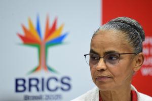 (250403) -- BRASILIA, 3 abril, 2025 (Xinhua) -- La ministra de Medio Ambiente y Cambio Climático brasileña, Marina Silva, asiste a una conferencia de prensa después de una reunión de los ministros de Medio Ambiente de los países del grupo BRICS, en el Palacio de Itamaraty, en Brasilia, Brasil, el 3 de abril de 2025. (Xinhua/Lucio Tavora) (lt) (rtg) (ra) (vf)