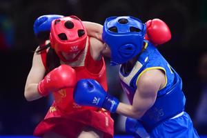 (250905) -- BRASILIA, 5 septiembre, 2025 (Xinhua) -- Man Sin Chu (i), de Macao de China, compite con Xiaowei Wu (d), de China, durante el combate femenino de semifinales de sanda de 60 kilogramos, en el 17 Campeonato Mundial de Wushu, en Brasilia, Brasil, el 5 de septiembre de 2025. (Xinhua/Lucio Tavora) (lt) (oa) (ra) (vf)
