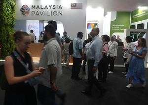 (251111) -- BELEM, 11 noviembre, 2025 (Xinhua) -- Personas caminan frente al Pabellón de Malasia durante la 30ª Conferencia de las Partes (COP30) de la Convención Marco de las Naciones Unidas sobre el Cambio Climático, en Belém, en estado de Pará, Brasil, el 11 de noviembre de 2025. (Xinhua/Lucio Tavora) (lt) (jg) (ra) (ce)