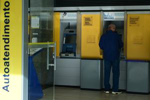 (250620) -- BRASILIA, 20 junio, 2025 (Xinhua) -- Un hombre utiliza un cajero automático en una sucursal bancaria, en Brasilia, Brasil, el 20 de junio de 2025. (Xinhua/Lucio Tavora) (lt) (oa) (da) (vf)