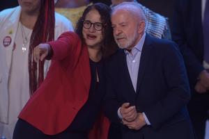 (251017) -- BRASILIA, 17 octubre, 2025 (Xinhua) -- Imagen del 16 de octubre de 2025 del presidente brasileño, Luiz Inácio Lula da Silva (d), conversando con la ministra de Ciencia, Tecnología e Innovación brasileña y presidenta del Partido Comunista de Brasil, Luciana Santos (i), durante el congreso nacional del Partido Comunista de Brasil, en Brasilia, Brasil. Lula da Silva defendió el jueves a Venezuela ante el incremento de las acciones del Gobierno del presidente estadounidense, Donald Trump, en relación con el país sudamericano, y reiteró que ningún mandatario extranjero tiene derecho a interferir en sus asuntos internos. (Xinhua/Lucio Tavora) (lt) (jg) (da) (ce)