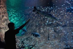 (260321) -- MATO GROSSO DO SUL, 21 marzo, 2026 – Un visitante toca el vidrio mientras observa peces en el acuario de agua dulce del Bioparque Pantanal, en la ciudad de Campo Grande, en el estado de Mato Grosso do Sul, Brasil, el 21 de marzo de 2026. Brasil será sede del 23 al 29 de marzo de la 15ª Reunión de la Conferencia de las Partes (COP15) de la Convención sobre la Conservación de las Especies Migratorias de Animales Silvestres, uno de los principales foros multilaterales para la protección de la biodiversidad a escala global. (Xinhua/Lucio Tavora) (lt) (rtg) (da)