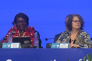 (260323) -- MATO GROSSO DO SUL, 23 marzo, 2026 (Xinhua) -- La subsecretaria general de las Naciones Unidas y directora ejecutiva adjunta del Programa de las Naciones Unidas para el Medio Ambiente, Elizabeth Maruma Mrema (i), habla junto a la secretaria ejecutiva de la Convención sobre la Conservación de Especies Migratorias de Animales Silvestres, Amy Fraenkel (d), durante la 15ª Conferencia de las Partes (COP15) de la Convención sobre la Conservación de las Especies Migratorias de Animales Silvestres, uno de los principales foros multilaterales para la protección de la biodiversidad, en Campo Grande, Mato Grosso do Sul, Brasil, el 23 de marzo de 2026. La 15ª COP15 sobre la Conservación de las Especies Migratorias de Animales Silvestres, se inauguró el lunes en la ciudad de Campo Grande, capital del estado brasileño de Mato Grosso do Sul, con un fuerte énfasis en la diversidad cultural, la cooperación internacional y la urgencia de proteger la biodiversidad global. (Xinhua/Lucio Tavora) (lt) (rtg) (ah) (vf)