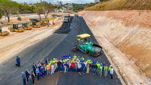 (250829) -- MINAS GERAISS, 29 agosto, 2025 (Xinhua) -- Vista aérea tomada con un dron el 29 de agosto de 2025 proveída por el Palacio de Planalto del presidente brasileño, Luiz Inácio Lula da Silva (c-frente), posando para una fotografía grupal durante una visita a las obras de construcción de la Avenida Mayor Newton Cardoso, en el estado de Minas Gerais, Brasil. Lula da Silva aseguró el viernes que "no tiene prisa" para implementar la Ley de Reciprocidad contra los Estados Unidos, aunque subrayó la importancia de avanzar en el proceso como una forma de presionar para que se reanuden las negociaciones sobre el arancel del 50 por ciento aplicado a productos brasileños. (Xinhua/Ricardo Stuckert/Palacio de Planalto) (jg) (da) (ce)