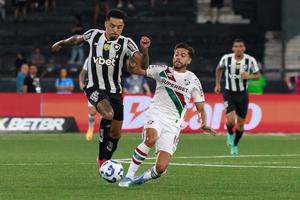 (250427) -- RIO DE JANEIRO, 27 abril, 2025 (Xinhua) -- Imagen del 26 de abril de 2025 del jugador Gregore (i), de Botafogo, disputando el balón con Nonato (d), de Fluminense, durante el partido correspondiente a la jornada 6 del Campeonato Brasileño Serie A, celebrado en el Estadio Nilton Santos, en Río de Janeiro, Brasil. (Xinhua/Claudia Martini) (cm) (oa) (da)