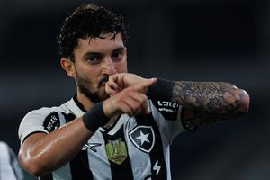 (250512) -- RÍO DE JANEIRO, 12 mayo, 2025 (Xinhua) -- Imagen del 11 de mayo de 2025 del jugador Alex Telles, de Botafogo, festejando su anotación durante el partido correspondiente a la jornada 8 del Campeonato Brasileño Serie A, ante Internacional, celebrado en el Estadio Nilton Santos, en Río de Janeiro, Brasil. (Xinhua/Claudia Martini) (cm) (oa) (ah) (vf)