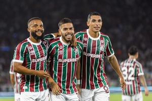 (251128) -- RIO DE JANEIRO, 28 noviembre, 2025 (Xinhua) -- Imagen del 27 de noviembre de 2025 del jugador Nonato (c), de Fluminense, festejando su anotación junto a sus compañeros de equipo durante el partido correspondiente a la jornada 36 del Campeonato Brasileño Serie A, ante Sao Paulo, celebrado en el Estadio Maracaná, en Río de Janeiro, Brasil. (Xinhua/Claudia Martini) (cm) (rtg) (ra) (vf)