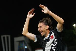 (251129) -- RIO DE JANEIRO, 29 noviembre, 2025 (Xinhua) -- Imagen del 28 de noviembre de 2025 del jugador Nuno Moreira, de Vasco da Gama, festejando su anotación durante el partido correspondiente a la jornada 36 del Campeonato Brasileño Serie A, ante Internacional, celebrado en el Estadio Sao Januario, en Río de Janeiro, Brasil. (Xinhua/Claudia Martini) (cm) (rtg) (da)