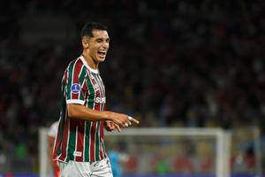 (250820) -- RÍO DE JANEIRO, 20 agosto, 2025 (Xinhua) -- Imagen del 19 de agosto de 2025 del jugador Kevin Serna, de Fluminense, de Brasil, festejando su anotación durante el partido de vuelta de los octavos de final de la Copa Conmebol Sudamericana ante América de Cali, de Colombia, en el Estadio Maracaná, en Río de Janeiro, Brasil. (Xinhua/Claudia Martini) (cm) (da) (ce)