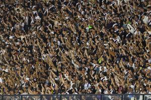 (250409) -- RIO DE JANEIRO, 9 abril, 2025 (Xinhua) -- Imagen del 8 de abril de 2025 de aficionados de Vasco da Gama. de Brasil, animando durante el partido del grupo G de la jornada 2 de la Fase de Grupos de la Copa Conmebol Sudamericana ante Academia Puerto Cabello, de Venezuela, celebrado en el Estadio Sao Januário, en Río de Janeiro, Brasil. (Xinhua/Claudia Martini) (cm) (ah) (ra) (ce)