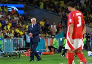 (250905) -- RIO DE JANEIRO, 5 septiembre, 2025 (Xinhua) -- Imagen del 4 de septiembre de 2025 del director técnico Carlo Ancelotti (i), de Brasil, reaccionando durante el partido ante Chile correspondiente a las Eliminatorias Sudamericanas para el Mundial de Estados Unidos, México y Canadá 2026, celebrado en el Estadio Maracaná, en Río de Janeiro, Brasil. (Xinhua/Claudia Martini) (rtg) (ra) (vf)