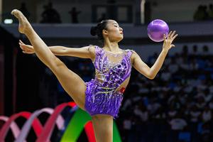 (250821) -- RIO DE JANEIRO, 21 agosto, 2025 (Xinhua) -- Imagen del 20 de agosto de 2025 de Hung Ka Yi, de Hong Kong de China, compitiendo en la ronda de clasificación individual de pelota durante el 41 Campeonato Mundial de Gimnasia Rítmica de la FIG, en Río de Janeiro, Brasil. (Xinhua/Claudia Martini) (rtg) (ra) (ce)