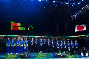 BRASIL-RIO DE JANEIRO-GIMNASIA RITMICA-CAMPEONATO MUNDIAL DE LA FIG-CONCURSO COMPLETO GRUPAL-CEREMONIA DE PREMIACION