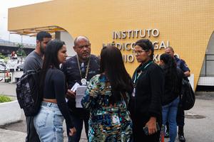 (251031) -- RIO DE JANEIRO, 31 octubre, 2025 (Xinhua) -- Personas reciben información frente al Instituto Médico Legal para reconocer los cuerpos de las personas fallecidas tras la megaoperación policial contra el grupo criminal "Comando Vermelho", en Río de Janeiro, Brasil, el 31 de octubre de 2025. El presidente de Brasil, Luiz Inácio Lula da Silva, determinó el jueves el envío inmediato de peritos federales a Río de Janeiro para reforzar las investigaciones sobre la megaoperación policial que dejó el martes 121 muertos durante el combate al crimen organizado en dos complejos de favelas, anunció el ministro de Justicia, Ricardo Lewandowski. (Xinhua/Claudia Martini) (cm) (oa) (ra) (ce)