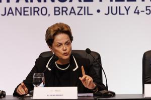 (250706) -- RIO DE JANEIRO, 6 julio, 2025 (Xinhua) -- Imagen del 5 de julio de 2025 de Dilma Rousseff, presidenta del Nuevo Banco de Desarrollo (NBD) y expresidenta de Brasil, asistiendo a una conferencia de prensa, en Río de Janeiro, Brasil. Al explicar que la misión del banco es servir al Sur Global, Rousseff dijo que el NDB busca "financiar la innovación, la ciencia y tecnología para lograr que los países de los BRICS reúnan las demandas de la cuarta revolución industrial". (Xinhua/Claudia Martini) (rtg) (ah)