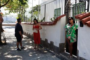 (250305) -- RIO DE JANEIRO, 5 marzo, 2025 (Xinhua) -- Una mujer posa para una fotografía frente a la casa que fue utilizada como lugar de rodaje de la película brasileña "Aún Estoy Aquí", en el barrio de Urca, en Río de Janeiro, Brasil, el 5 de marzo de 2025. La alcaldía del estado brasileño de Río de Janeiro anunció el lunes que comprará y transformará en la Casa del Cine Brasileño el inmueble utilizado en la película "Aún Estoy Aquí", ganadora del primer premio Oscar en la historia de Brasil. (Xinhua/Claudia Martini) (cm) (jg) (ah) (ce)