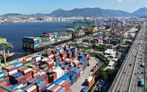 (260328) -- RIO DE JANEIRO, 28 marzo, 2026 (Xinhua) -- Vista aérea tomada con un dron el 26 de marzo de 2026 de una terminal de contenedores en la bahía de Guanabara, en Río de Janeiro, Brasil. Río de Janeiro es la segunda ciudad más grande de Brasil. (Xinhua/Jin Haoyuan) (oa) (da)