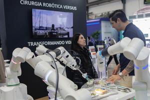 (250813) -- RIO DE JANEIRO, 13 agosto, 2025 (Xinhua) -- Una visitante interactúa con un expositor en una demostración de cirugía robótica durante la Rio Innovation Week, en Río de Janeiro, Brasil, el 13 de agosto de 2025. (Xinhua/Claudia Martini) (cm) (ah) (ra) (ce)