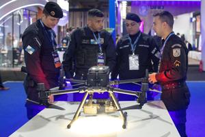 (250813) -- RIO DE JANEIRO, 13 agosto, 2025 (Xinhua) -- Visitantes observan un dron policía exhibido durante la Rio Innovation Week, en Río de Janeiro, Brasil, el 13 de agosto de 2025. (Xinhua/Claudia Martini) (cm) (ah) (ra) (ce)