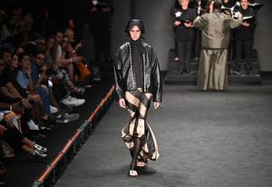 (260417) -- RIO DE JANEIRO, 17 abril, 2026 (Xinhua) -- Imagen del 16 de abril de 2026 de una modelo presentando una creación de HANDRED durante la Semana de la Moda de Río, en Río de Janeiro, Brasil. La Semana de la Moda de Río 2026 se celebra en Río de Janeiro de martes a sábado, con alrededor de 20 marcas de moda presentando sus últimas creaciones. (Xinhua/Jin Haoyuan) (oa) (ra) (vf)
