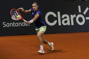 (250221) -- RIO DE JANEIRO, 21 febrero, 2025 (Xinhua) -- Imagen del 20 de febrero de 2025 de Rafael Matos, de Brasil, devolviendo la pelota durante el partido de cuartos de final de dobles masculinos entre Rafael Matos/Marcelo Melo, de Brasil, y Francisco Cabral, de Portugal/Jean-Julien Rojer, de Países Bajos, en el Río Open de la ATP 500 2025, en el Jockey Club Brasileiro, en Río de Janeiro, Brasil. (Xinhua/Claudia Martini) (cm) (oa) (ra) (vf)