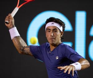 (250222) -- RIO DE JANEIRO, 22 febrero, 2025 (Xinhua) -- Imagen del 21 de febrero de 2025 de Francisco Comesaña, de Argentina, devolviendo la pelota durante el partido de cuartos de final de individuales masculinos ante Alexander Zverev, de Alemania, en el Río Open de la ATP 500 2025 en el Jockey Club Brasileiro, en Río de Janeiro, Brasil. (Xinhua/Wang Tiancong) (jg) (da)