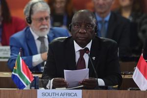 (250707) -- RIO DE JANEIRO, 7 julio, 2025 (Xinhua) -- El presidente sudafricano, Cyril Ramaphosa, asiste a la XVII Cumbre del BRICS, en el Museo de Arte Moderno, en Río de Janeiro, Brasil, el 7 de julio de 2025. La XVII Cumbre del BRICS comenzó el domingo en la ciudad brasileña de Río de Janeiro con la participación de jefes de Estado y de Gobierno de los países miembros del grupo, así como representantes de naciones asociadas e invitados. (Xinhua/Lucio Tavora) (lt) (rtg) (ah) (ce)