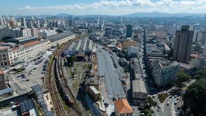 (250517) -- SAO PAULO, 17 mayo, 2025 (Xinhua) -- Vista aérea tomada con un dron el 15 de mayo de 2025 de un centro ferroviario, en el distrito de Luz, en Sao Paulo, Brasil. (Xinhua/Wang Tiancong) (oa) (d)