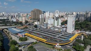 (250517) -- SAO PAULO, 17 mayo, 2025 (Xinhua) -- Vista aérea tomada con un dron el 15 de mayo de 2025 de la terminal de autobuses Dom Pedro II, en Sao Paulo, Brasil. (Xinhua/Wang Tiancong) (oa) (rtg) (da)
