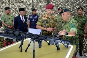(250605) -- BANDAR SERI BEGAWAN, 5 junio, 2025 (Xinhua) -- Imagen del 31 de mayo de 2025 del príncipe heredero de Brunéi, Haji Al Muhtadee Billah (i-frente), sultán adjunto, visitando una exposición militar, en Brunéi. Brunéi celebró el 64 aniversario de sus Fuerzas Armadas Reales con una serie de eventos en todo el país, con un gran desfile militar, exposiciones y actividades escolares, informaron los medios de comunicación locales. (Xinhua/Departamento de Información de la Oficina del Primer Ministro de Brunéi) (jg) (da) (vf)
