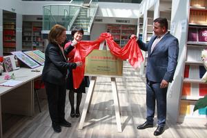 (260419) -- SOFIA, 19 abril, 2026 (Xinhua) -- Imagen del 18 de abril de 2026 Chen Ying (c), la directora china del Instituto Confucio en Sofía, y Aksiniya Koleva (i), el director búlgaro, inaugurando un centro de cultivo de peonías, en Sofía, Bulgaria. El Instituto Confucio de Sofía acogió el sábado un concurso de canto chino e inauguró un centro de cultivo de peonías para celebrar el Día Internacional de la Lengua china de la Organización de las Naciones Unidas de este año. (Xinhua/Marian Draganov) (da) (ah)