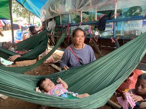 (250729) -- ODDAR MEANCHEY, 29 julio, 2025 (Xinhua) -- Una madre camboyana cuida a su hijo en un refugio, en la provincia de Oddar Meanchey, Camboya, el 29 de julio de 2025. El Ministerio de Defensa Nacional de Camboya rechazó el martes las acusaciones del Ejército tailandés sobre un supuesto ataque a su territorio por parte de las fuerzas camboyanas pocas horas después de la entrada en vigor del alto el fuego. (Xinhua/Van Pov) (jg) (ra) (ce)