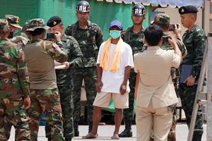(250801) -- ODDAR MEANCHEY, 1 agosto, 2025 (Xinhua) -- Soldados tailandeses devuelven a un soldado camboyano capturado a Camboya en el puesto de control fronterizo de O'Smach, en la provincia de Oddar Meanchey, Camboya, el 1 de agosto de 2025. El Ejército tailandés liberó el viernes a dos de los 20 soldados camboyanos que capturó después de que entró en vigor un alto el fuego, dijo un portavoz del Ministerio de Defensa de Camboya. (Xinhua/Agence Kampuchea Press) (rtg) (ra) (ce)