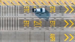 (250417) — PHNOM PENH, 17 abril, 2025 (Xinhua) — Vista aérea tomada con un dron del 17 de marzo de 2025 de un automóvil llegando a la estación de peaje de Phnom Penh de la autopista Phnom Penh-Sihanoukville en Camboya. La autopista Phnom Penh-Sihanoukville, un proyecto bajo la Iniciativa de la Franja y la Ruta, cuenta con la inversión de China Road and Bridge Corporation bajo el modelo de construcción-operación-transferencia (BOT, por sus siglas en inglés) y es la primera autopista de la historia de Camboya. (Xinhua/Cheong Kam Ka) (da) (ra) (vf)