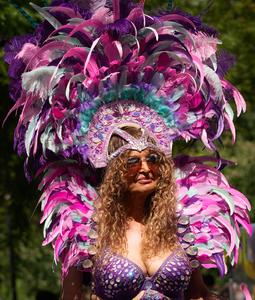 (250727) -- COQUITLAM, 27 julio, 2025 (Xinhua) -- Imagen del 26 de julio de 2025 de una juerguista portando un disfraz mientras participa en el Desfile de Carnaval en el Festival Días del Caribe 2025, en Coquitlam, Columbia Británica, Canadá. El evento de dos días contó con música en vivo, presentaciones culturales, un desfile, cocina tradicional caribeña, y un mercado de artesanías, resaltando la vitalidad de la cultura caribeña. (Xinhua/Liang Sen) (rtg) (ah)