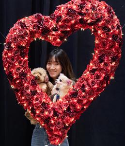 (250914) -- MISSISSAUGA, 14 septiembre, 2025 (Xinhua) -- Imagen del 13 de septiembre de 2025 de una mujer sosteniendo perros de compañía mientras posan para fotografías con una decoración en forma de corazón durante la Exposición Canadiense de Mascotas de otoño de 2025, en Mississauga, Ontario, Canadá. Este evento, que incluye un mercado de mascotas, concursos de mascotas y mucho más, se celebra aquí del 13 al 14 de septiembre con la participación de miles de familias y sus mascotas. (Xinhua/Zou Zheng) (oa) (ah)