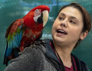 (260404) -- ONTARIO, 4 abril, 2026 (Xinhua) -- Imagen del 3 de abril de 2026 de una mujer interactuando con un guacamayo en la Exposición Canadiense de Mascotas de Primavera 2026, en Mississauga, Ontario, Canadá. Presentando un mercado de mascotas, concursos de mascotas y otras actividades, el evento de tres días comenzó aquí el viernes y durará hasta el domingo. (Xinhua/Zou Zheng) (oa) (da)