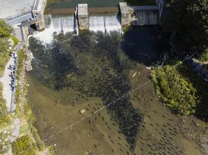 (250911) -- PORT HOPE, 11 septiembre, 2025 (Xinhua) -- Vista aérea tomada con un dron el 10 de septiembre de 2025 de peces nadando río arriba en el río Ganaraska durante su migración hacia las zonas de desove, en Port Hope, Ontario, Canadá. (Xinhua/Zou Zheng) (jg) (ah) (vf)