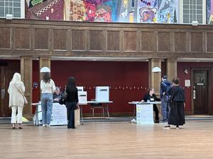 (250428) — OTTAWA, 28 abril, 2025 (Xinhua) — Personas se preparan para votar en un colegio electoral, en Ottawa, Canadá, el 28 de abril de 2025. Millones de canadienses se forman para emitir sus votos el lunes mientras el presidente estadounidense, Donald Trump, intervino en las elecciones con una nueva amenaza de anexión del país. (Xinhua/Min Chen) (rtg) (ah) (vf)