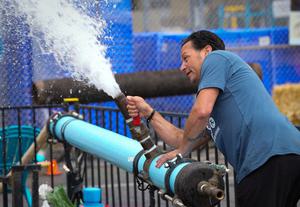 (250511) — RICHMOND, 11 mayo, 2025 (Xinhua) — Imagen del 10 de mayo de 2025 de un trabajador demostrando operaciones de pipas de agua durante el evento de Jornada de Puertas Abiertas de Trabajo Público, en Richmond, Columbia Británica, Canadá. Presentando exhibiciones interactivas, demostraciones de equipamiento y más, el evento de un día de duración ofrece una mirada detrás de escena a los servicios esenciales que mantienen la ciudad funcionando sin problemas. (Xinhua/Liang Sen) (rtg) (da)