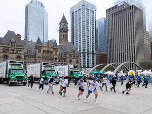 (250515) -- TORONTO, 15 mayo, 2025 (Xinhua) -- Imagen del 14 de mayo de 2025 de personas participando en el Desafío de Tirar del Camión de Second Harvest, en Toronto, Canadá. Con el fin de recaudar fondos para los esfuerzos de rescate y redistribución de alimentos de Second Harvest, el evento se llevó a cabo aquí el miércoles con más de 50 equipos. (Xinhua/Zou Zheng) (jg) (ah) (ce)