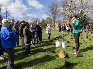 (250422) — TORONTO, 22 abril, 2025 (Xinhua) — Un trabajador explica los pasos de la plantación de árboles durante un evento de plantación de árboles en un parque, en Toronto, Canadá, el 22 de abril de 2025. Unas 160 personas participaron en el evento de plantación de árboles aquí el martes para conmemorar el Día de la Tierra. (Xinhua/Zou Zheng) (jg) (ra) (ce)